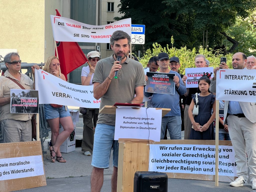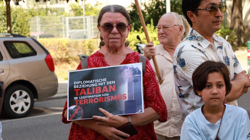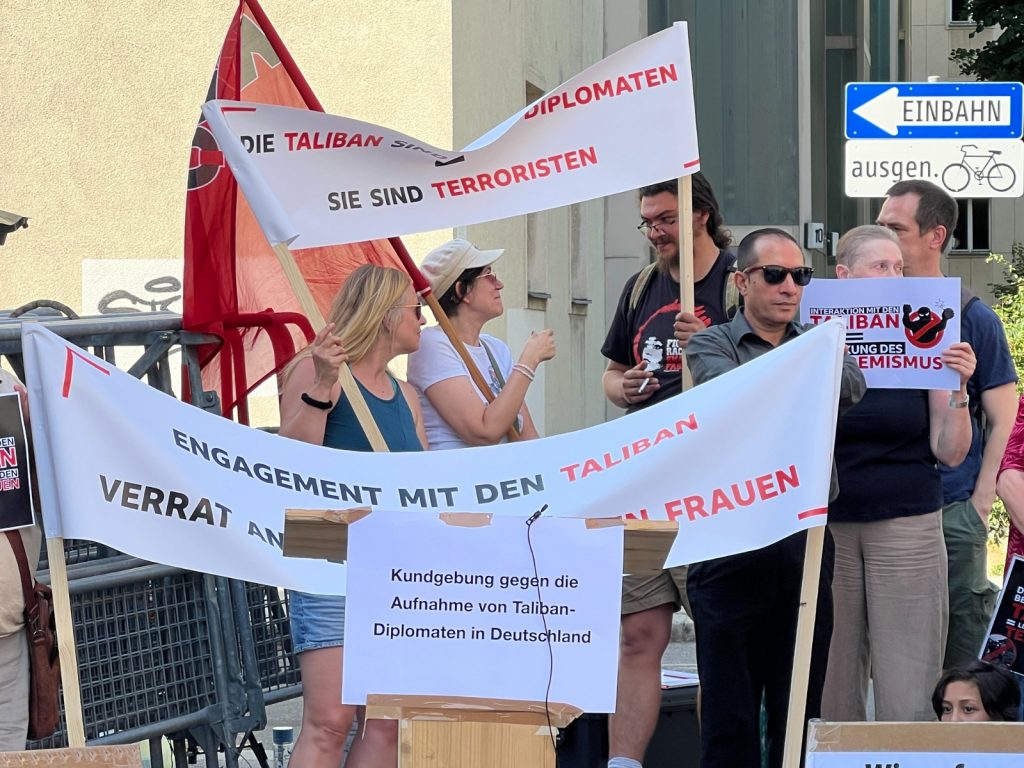معترضان در مقابل سفارت آلمان از دولت این کشور و دیگر دولتهای اروپایی خواستند که به جای گروه طالبان، دیاسپورای افغانستان را «شریک راهبردی» خود ببینند.