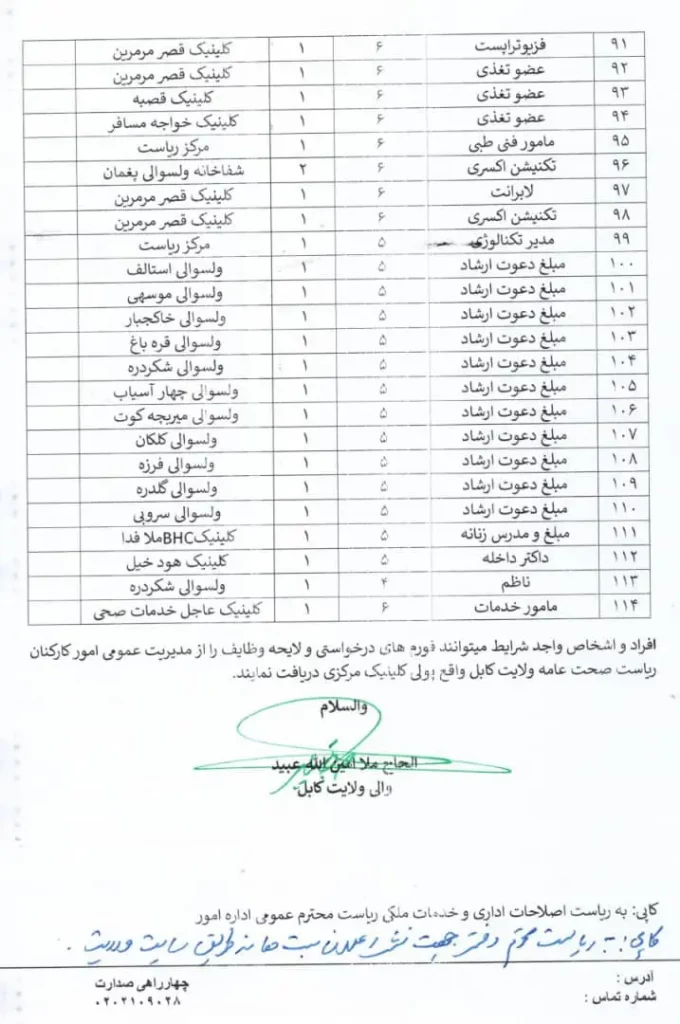 ریاست صحت عامه گروه طالبان در کابل به تازگی ۱۱ بست دعوت و ارشاد را برای استخدام مبلغ دین به اعلان سپرده است.