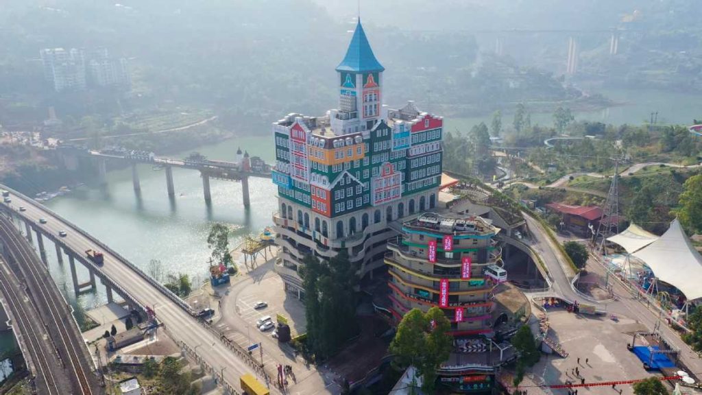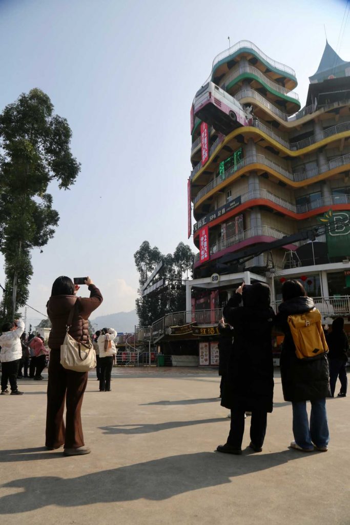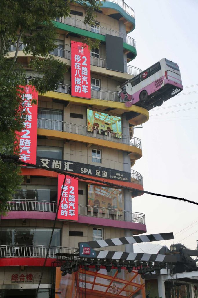اتوبوسی که هنگام پرواز داخل طبقه هشتم یک ساختمان می‌رود. در روزهای اخیر این صحنه در شهر چونگ‌چینگ چین، توجه بسیاری از مردم و گردشگران را به خود جلب کرده است.